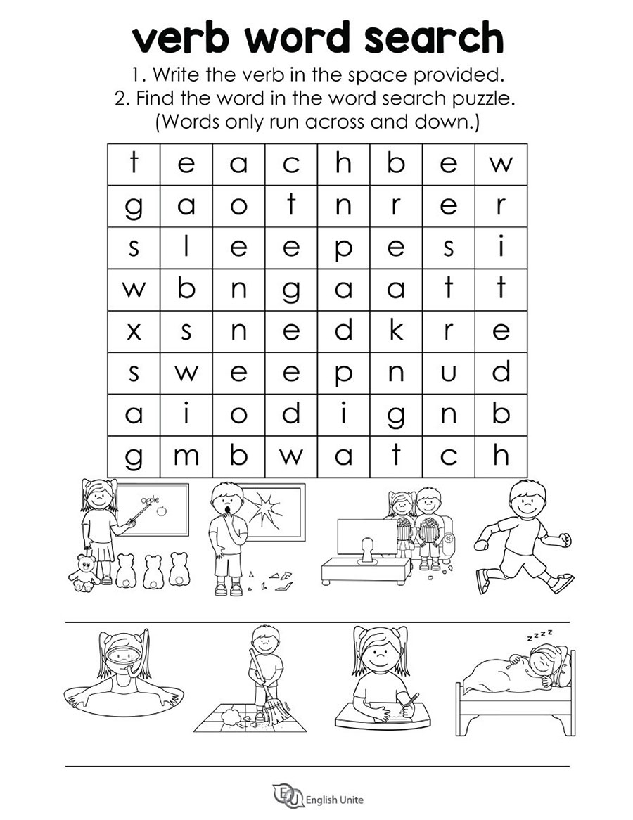 English Unite Verb Word Search Puzzle