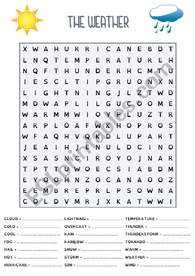 WORD SEARCH PUZZLE THE WEATHER ESL Worksheet By Billex